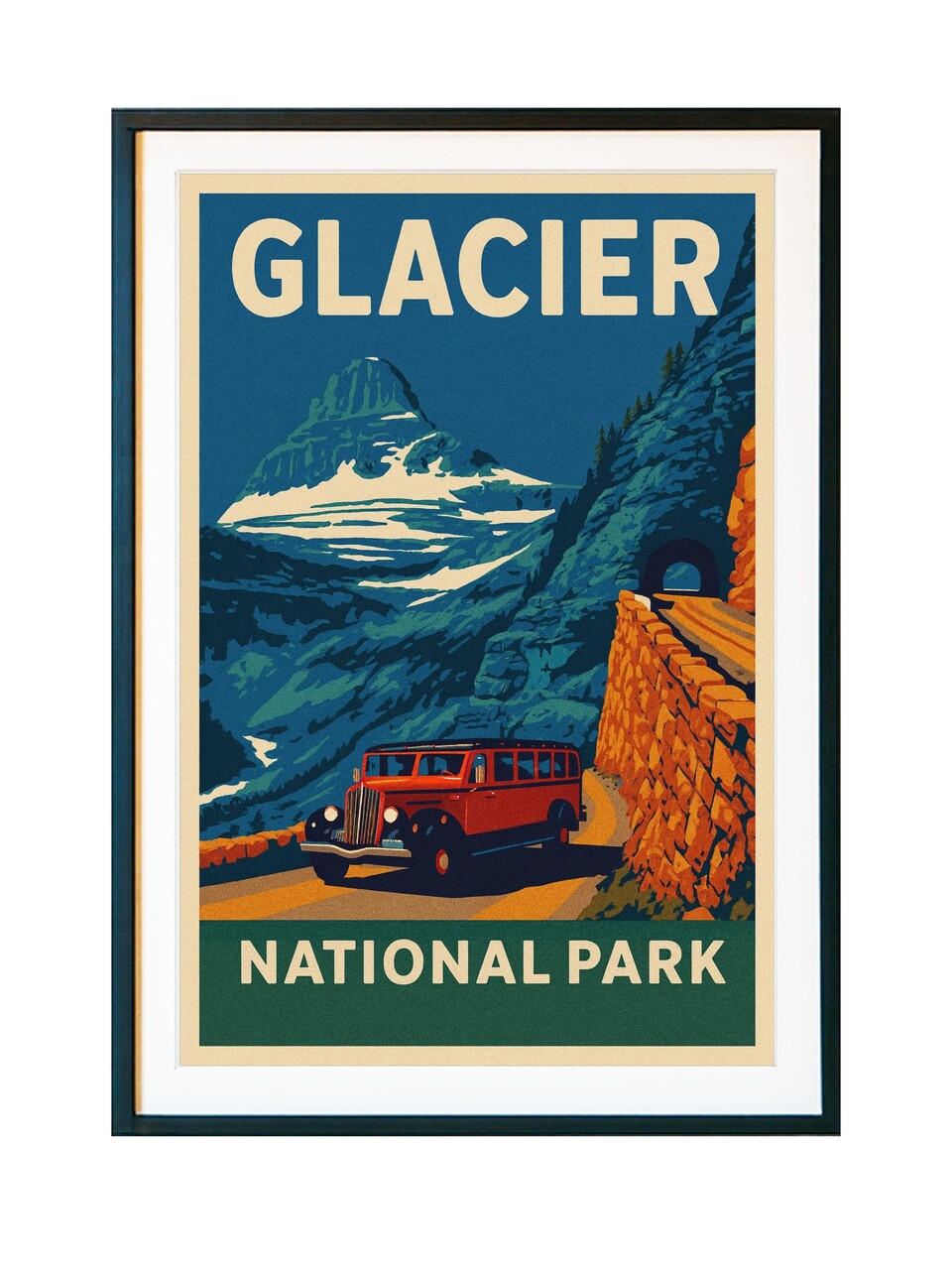 - Iconic Glacier red bus / Going-to-the-Sun Road artwork